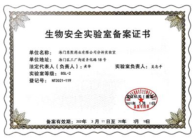 生物安全实验室证书